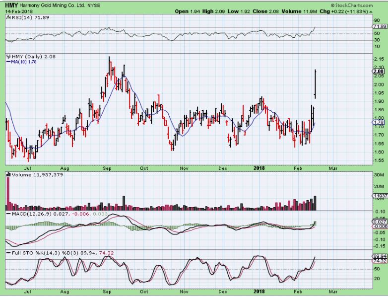 HMY – It closed up almost 12% & could just keep running.