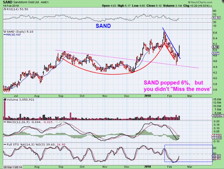 Let’s look at some Miners ( I already mentioned CDE, SAND, HMY etc in Tuesdays report to prepare you to buy, in case you want to review those charts. CDE HMY & SAND all popped very nicely yesterday. They should have been bought Wednesday morning)