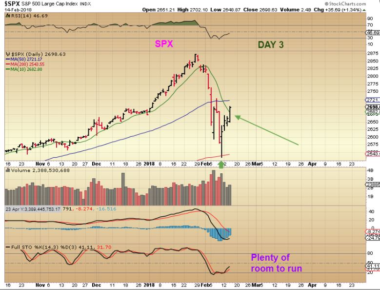 Above I raised this question: If I told you we were going on a 30 day journey, and we were on day 4, would you say it was ‘Late’ in our trip or ‘Early’? The reason I ask is that we are on day 4 and some are writing and telling me that they ‘missed the rally’. This daily cycle could run for 30 days, and 2 to 3 weeks of it could be heading higher. WEDNESDAY was the confirmed swing low, that was THE BUY signal.