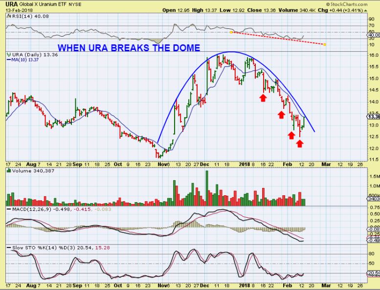 URA – I posted this yesterday and mentioned that a Break of the Dome would be considered bullish…