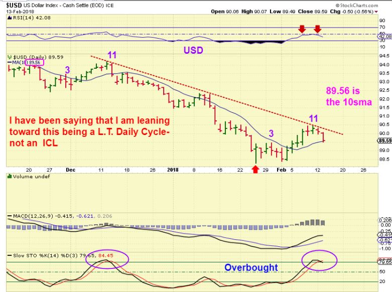 USD From Tuesdays report – People wrote to me saying that this was an ICL, so we needed to beware for precious metals. I just saw it as a dcl that looked very much like the one in Nov-December, peaking on day 11.