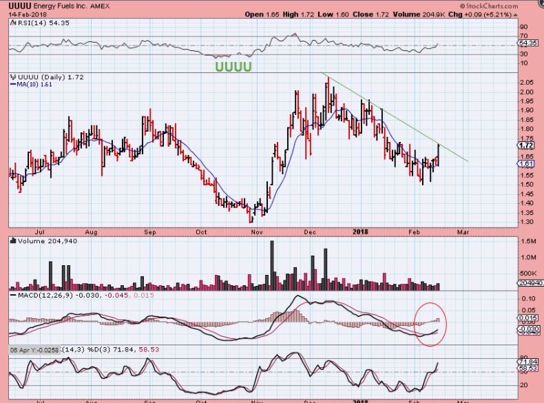 UUUU – This looks ready to move after a strong run in December and a pull back.