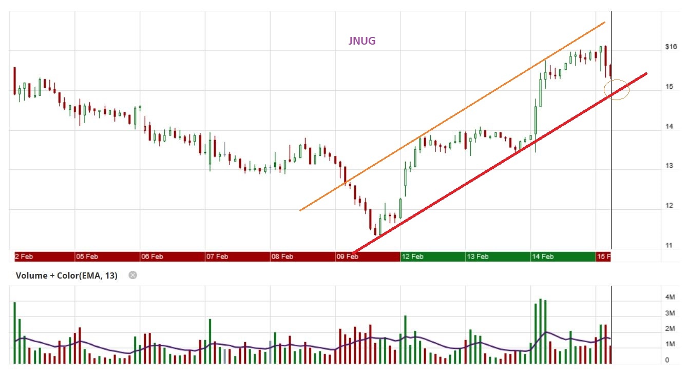 Just as a sidenote: TRX, THM, and a few others did not break down last week, held support, and were up as much as JNUG yesterday.