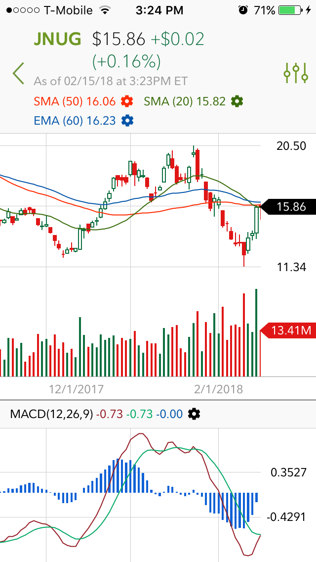 Love this 3 month chart of JNUG here with MA’s converging and on the cusp of a MACD crossover. very pleasing 🙂 https://uploads.disquscdn.com/images/49f48e743f70e112a294b4b0eccbe330340aa2ab68b57ffaf8fb4aeb5516954b.png