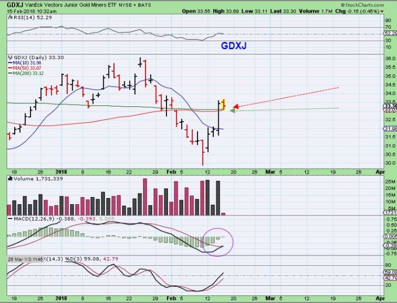 GDXJ 32.43 – JNUG 14.56, looking at that area for a buy today, IF we get there.