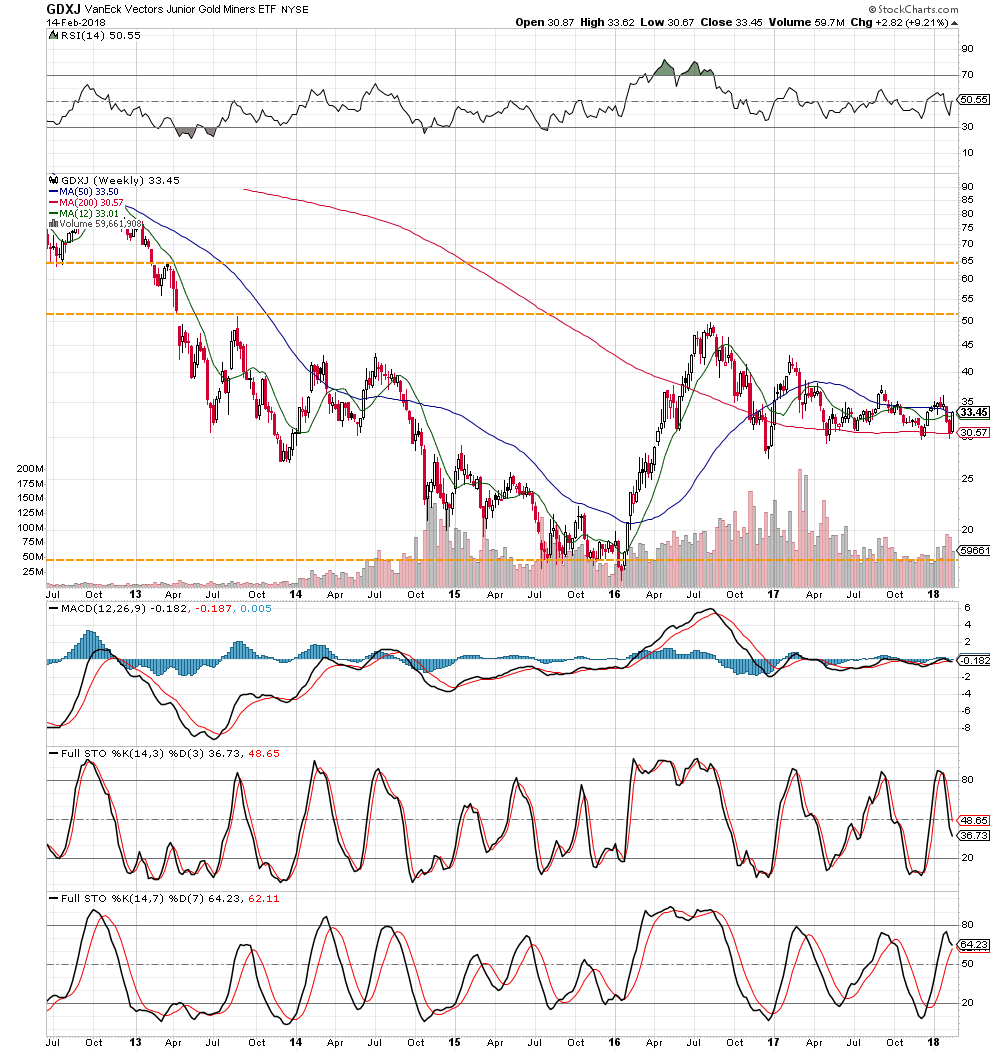 Right now GDXJ sitting down on the 50sma & 200sma as support. The longer that holds, the more encouraged buyers would be to continue to enter I would imagine.