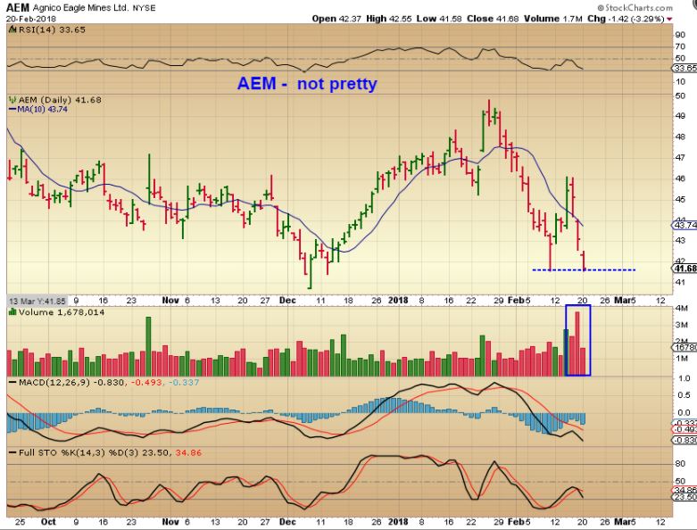 Some miners like AEM and ABX are really having a tough time of it. Then there is FSM, KL, etc. The bigger names don´t look great to me, though I am not worried about a smashing at this point, as even if we got another leg down it would be very near the end before some big upside action, in my opinion.