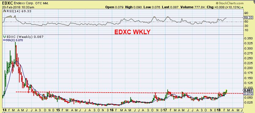 EDXC – This popped out above the base and also closed at 3 million. They have ( in the past) reported very good growth for their product and it s targeted toward pain relief for animals and anxiety relief,  so ‘Legal ” situations should not influence it.