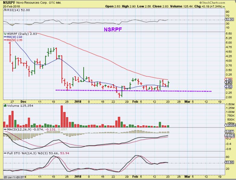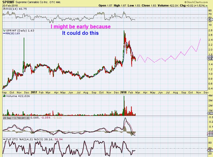 SPRWF #1 – I actually bought SPRWF yesterday, but I may be early. I was looking at this as though a break above the 10sma could lead to a run back to former highs now that this has consolidated. THAT CAN HAPPEN (see chart)  But…