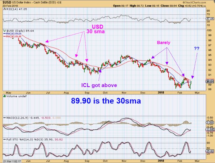 USD #1 – Notice that only  ICLs break out strongly & stay above the 30sma. A daily cycle low will break above the 10sma, but the 30sma has held it back in the past, so this should help me to gauge the USD.