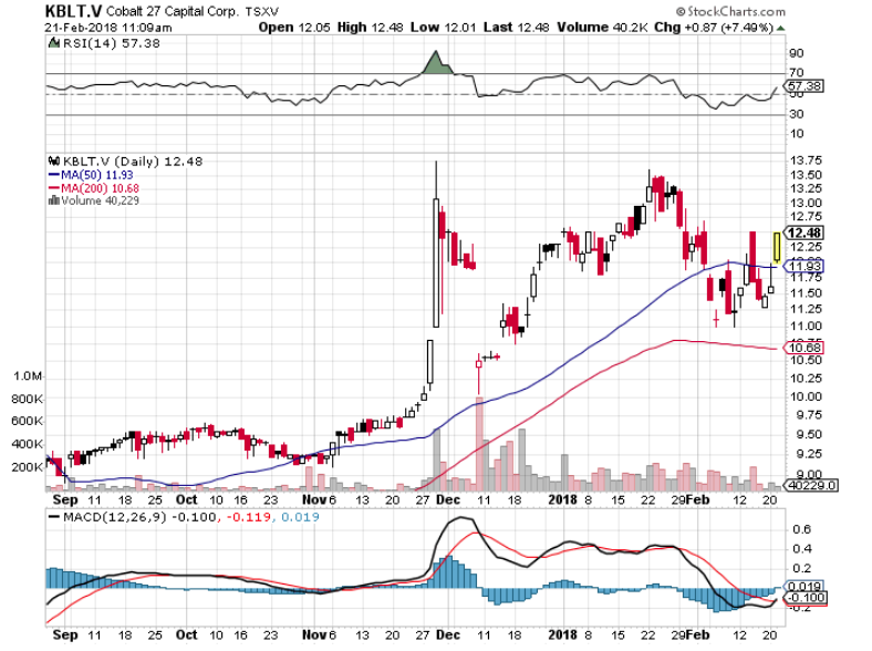 https://uploads.disquscdn.com/images/1656e55b4728813b68ccb21443249989a0e6fd7bf042c62277b3c251e1b1a245.png You may have read the linked article about Apple buying cobalt directly from miners to keep lack of supply from causing manufacturing delays. One way to participate is with a cobalt metal tracking pure play. KBLT.V in Canada, CBLLF in the US. It looks like its recent pull back/correction is over. https://www.bloomberg.com/news/articles/2018-02-21/apple-is-said-to-negotiate-buying-cobalt-direct-from-miners