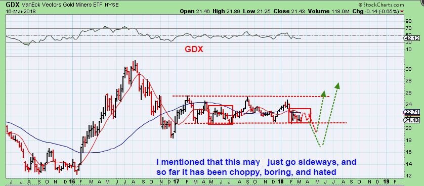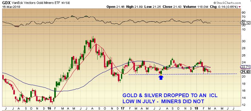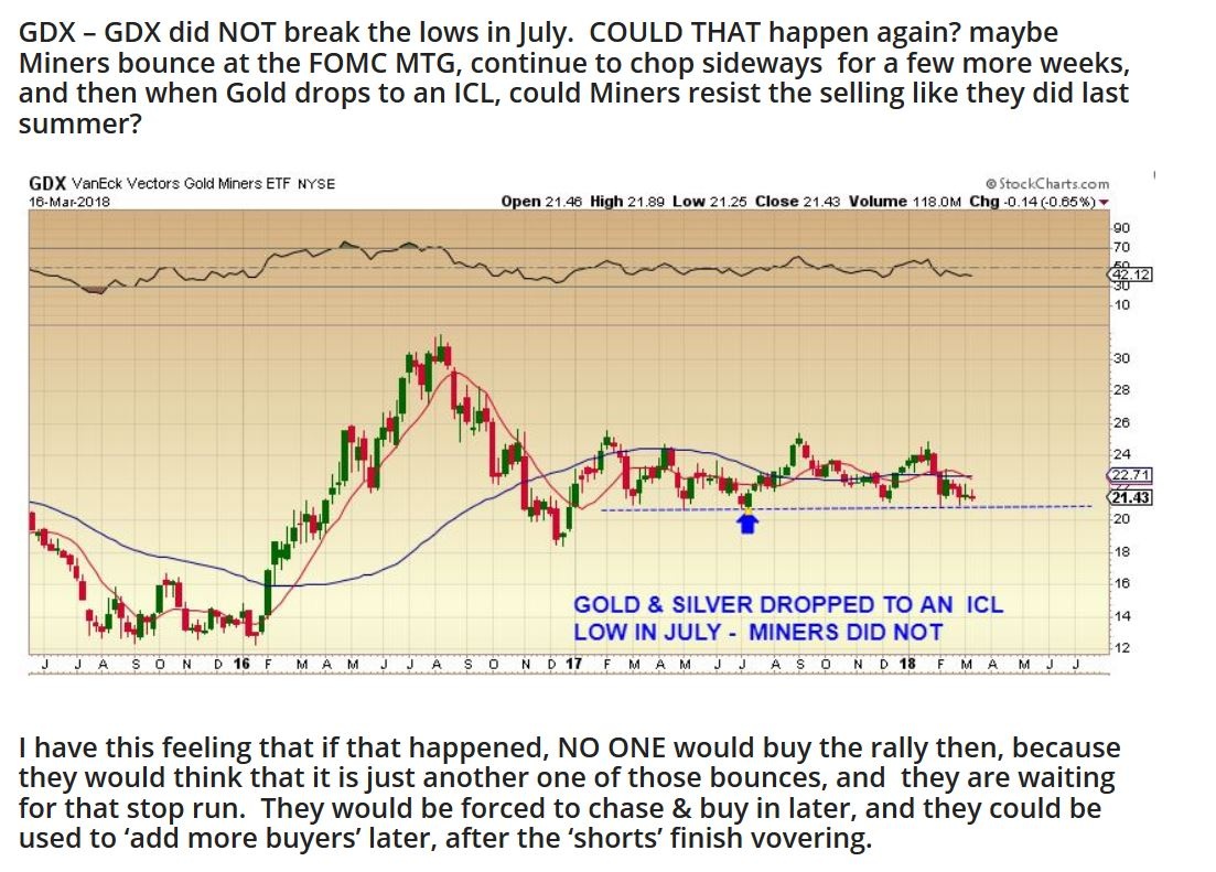 GDX REMINDER – Back in February I was discussing that we may just see boring sideways action in the Miners similar to last May, June, July. Did you remember that Gold had its ICL in JULY? Miners didn’t drop to new lows.