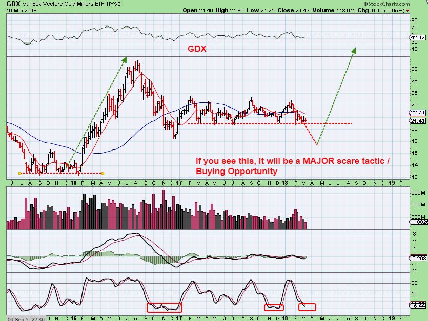 GDX #1 – The GDX is back at the lows too, and has gone sideways for months, even a year! People are SO SICK & TIRED of Miners, that NO ONE wants to buy them. That is becoming a perfect set up for most to miss the run, similar to 2016. Look at those 2016 lows = a sad Sideways chop, yet this one may be worse (longer). read the chart…