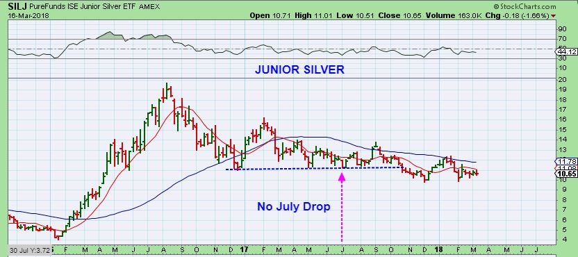 SILJ – And when SILVER slammed down in July ( maybe it was premaket, but even so) , Silver Junior Miners also did not panic out & run the stops. And notice that the Dec 2016 Lows (Stop run) has already happened in the Silver stocks ETF. If we see that sell off in May or June for Golds ICL, The Miners might already have their lows in place, but who will believe that!
