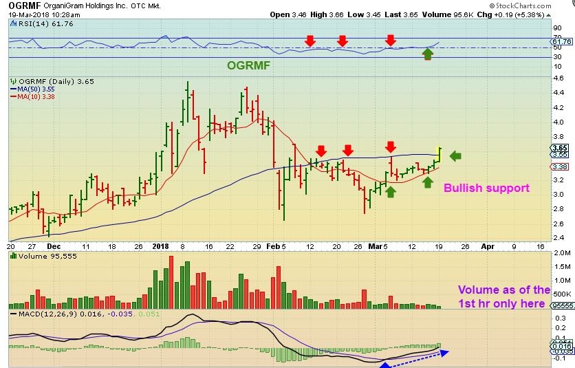 OGRMF has been holding the 10sma, and now is challenging the 50sma and I kike the volume.