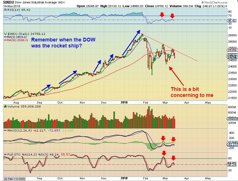 I also mentioned last week that inability to make a higher high was trouble. The dow went from SO strong , to “can’t make a new high”