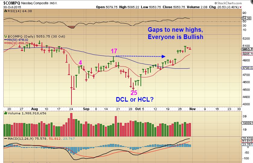NAZDAQ – And the NASDAQ is no exception when it comes to a non-confirming new high. New highs, RSI WEEK, MACD not confirming .