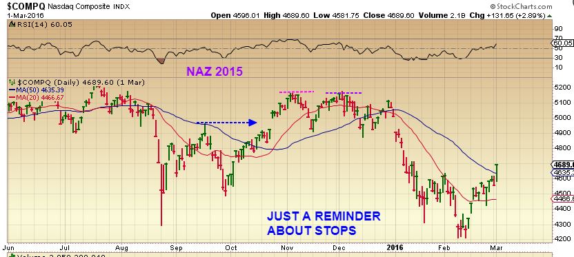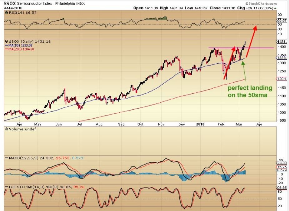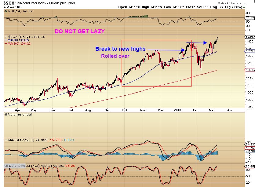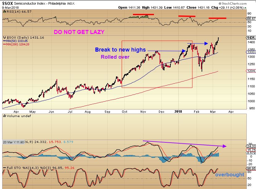 SOX – Please take note that Januarys break to new highs were also a ‘break out to new all time highs’ , and yet they did roll over. People forget very quickly what can happen, don’t they? So lets enjoy the ride, but do not get complacent. Always rely on stops.