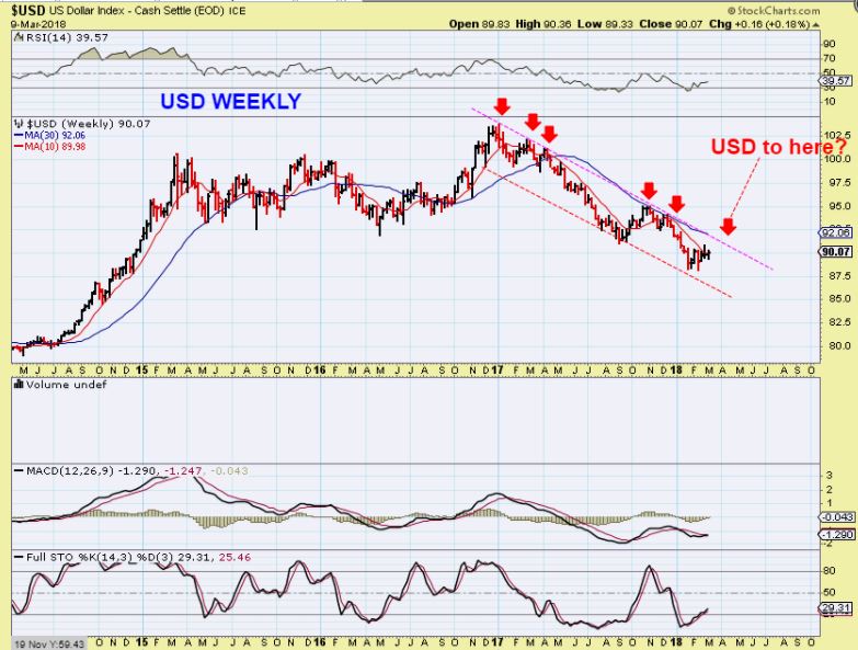 USD WEEKLY – So if the USD can continue higher, Precious metals can drop. This looks like the USD can move higher. In the BIG PICTURE, it looks like a weak bear flag.