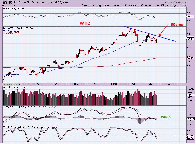 WTIC WEEKLY – This actually looks neutral with a high volume push higher last week, but I am still short. The COT shows smart money is Very Short, and this MACD still looks week.