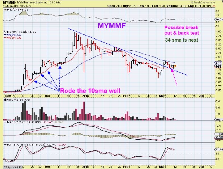 Refresh: This is MYMMF & I own it from near $1.75. It broke out from the 10sma, and above the down trend, and back tested . SO far so good. We;ll see, but this is acting correctly.