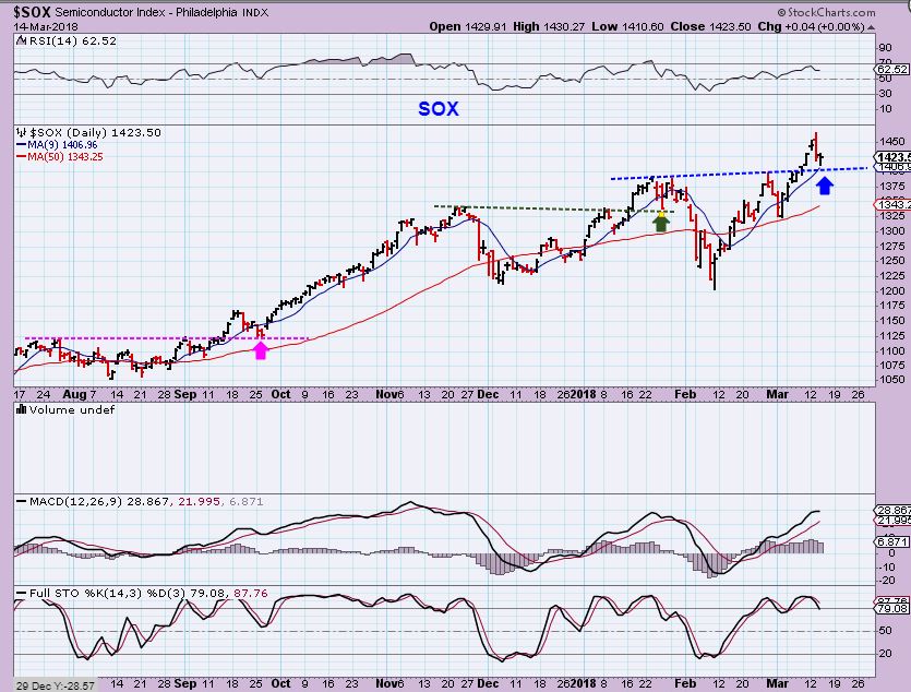 After the recent selling or pause  ( 3 days in the SPX & DJIA,  2 days in the NASDAQ or SOX), it would seem unlikely that anyone has been stopped out. I want to take a look at where we are cycle wise and discuss possibilities going forward, based on a comment that I made in the report yesterday.