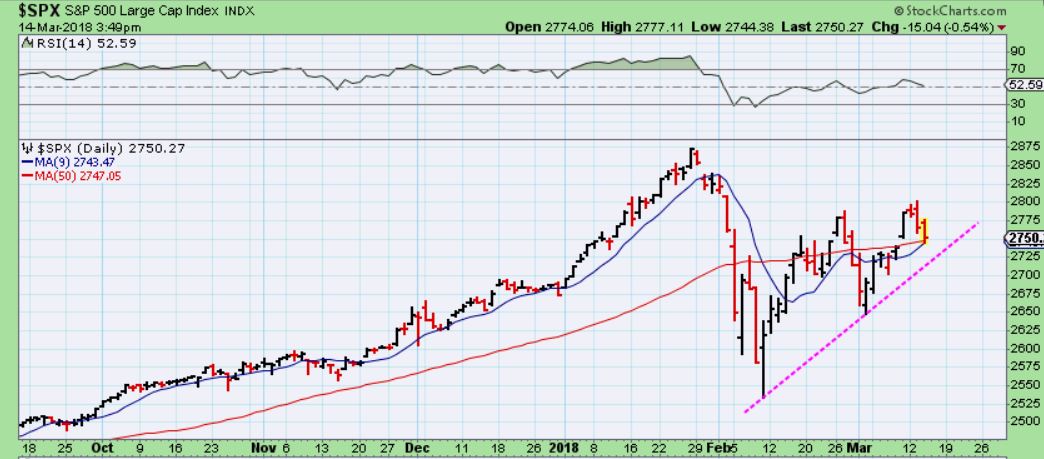 REMINDER :  Do you see how fast a raging bull can go south? Everybody was buying in January, right? And then the Peak of January to the Low of FEB took 8 days. Use trailing stops if you buy now going into the FOMC.