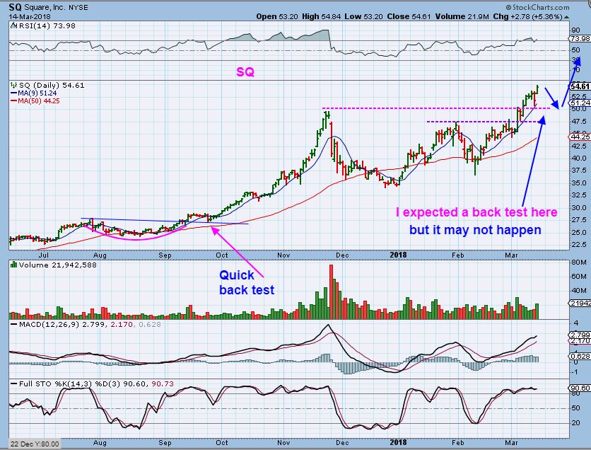 SQ – I was expecting a back test with this weeks selling, but it moved higher. This could still back test later when we get a sector DCL, but that would be a ‘buy’.