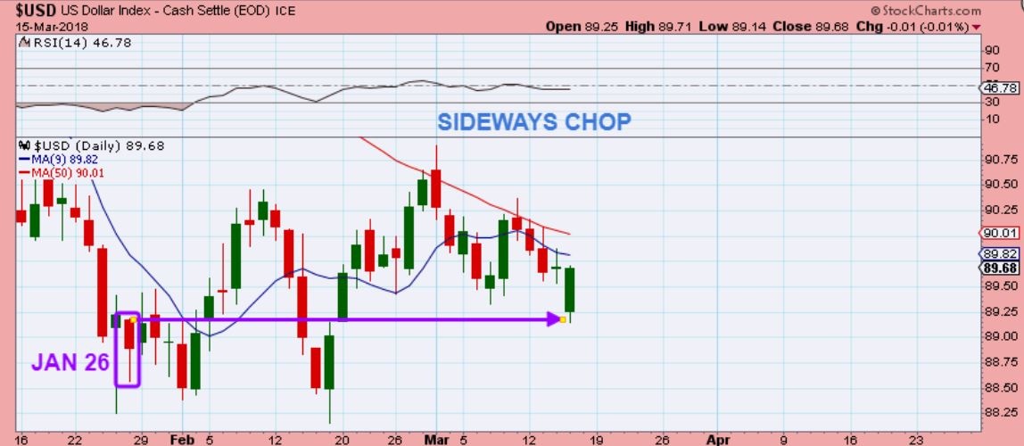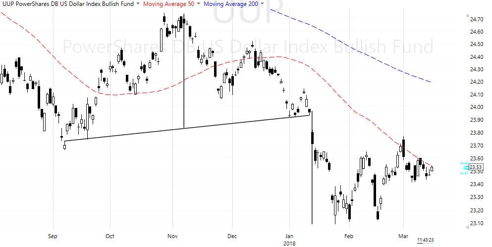 It looks like UUP might have put in its fourth higher low: Jan 25, Feb1, Feb 15 and Mar 13. So the USD is in a stealth move up?