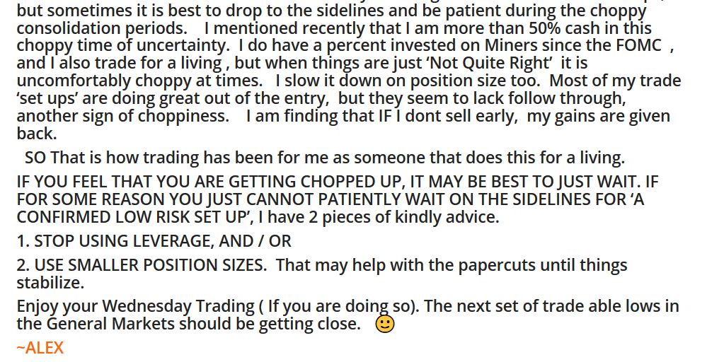 THAT SAID:  We could be close to a bottom in the General Markets, but really until then, I tend to think that it may be best to try and be patient and continue to wait for the market sectors to begin trending higher.  If you cannot do that,  at least do as I have been doing, and Keep positions small and on a short leash.