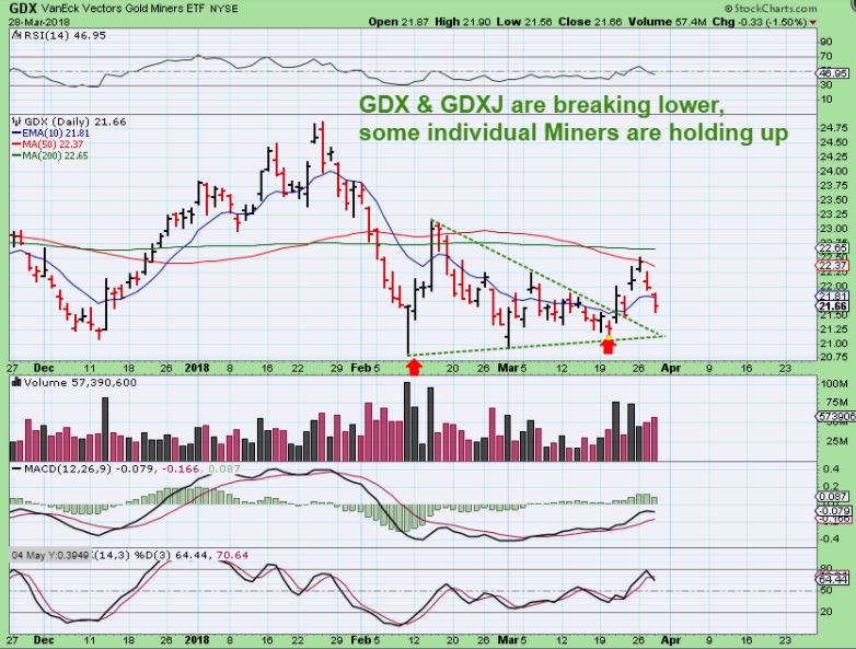 GDX –  Please read the chart, but they closed below the 10sma & Volume selling increased.  THAT SAID…