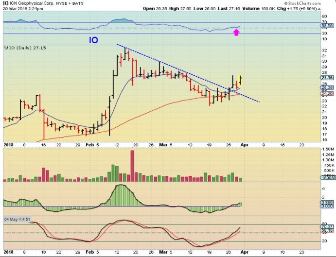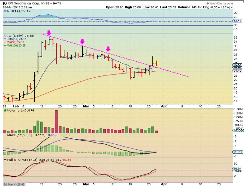 As an example: I bought IO a couple of days ago and I added too. This is like buying a 3x etf.  Tuesday it rallied almost $4 above the 10sma!  And then sold off into the close. Wednesday it rallied again about $1.50 and then sold off to down almost $1.  It closed down 50 cents,  but that isn’t as fun of a ride as it looks, I know, I own it  🙂   It still looks bullish, but I owned this semi- heavy and gaining $3 / share Tuesday and closing down $2 below that point the next day is just a choppy mess.  I am still in this above the 50 & 10 sma,  but it is going no where until the markets bottom.