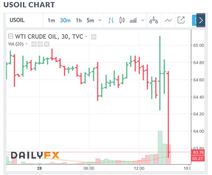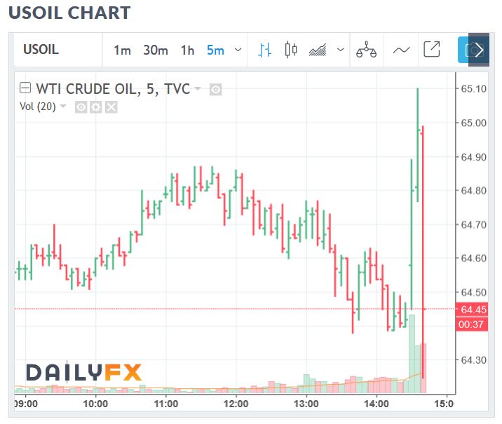 I was watching Oil real time, and after the release,  Oil took off higher and looked Bullish.  BUlls probably went long.   Then it crashed  as seen here on a 5 minute chart.   That could have been a bull trap & a bear trap, and Bears may have jumped in short , but…