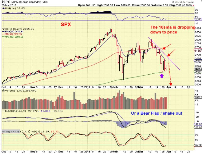 GENERAL MARKETS  SUMMARY–  We are in the early timing for a DCL,  but until we get a confirmed DCL, I actually lean toward a bear flag in the SPX and another drop in the SPX, DJIA, and the NASDAQ.  Each morning rally or Gap up sells off.  Finding additional Buying to give us some follow through above the 10sma is the problem.