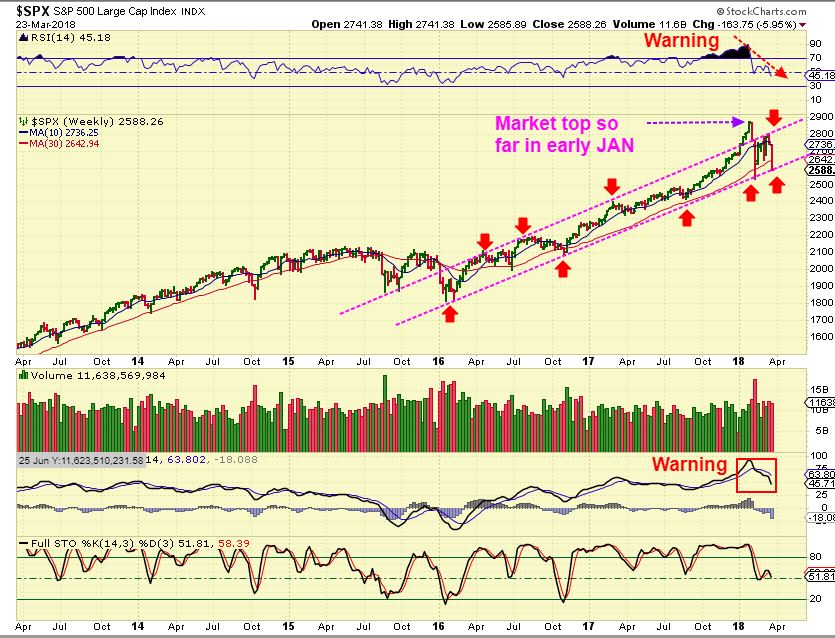 SPX –  When we dropped,  the SPX landed on a lower channel line March 23rd and …