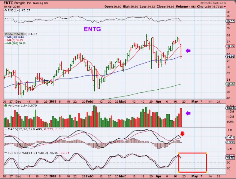 I posted this drop in our daily reports this week, saying that I am thinking about the weakness in SOX , and I listed several Semiconductor stocks that had a high volume drop too.  Signs of  a possible top in place for the SEMI s ??