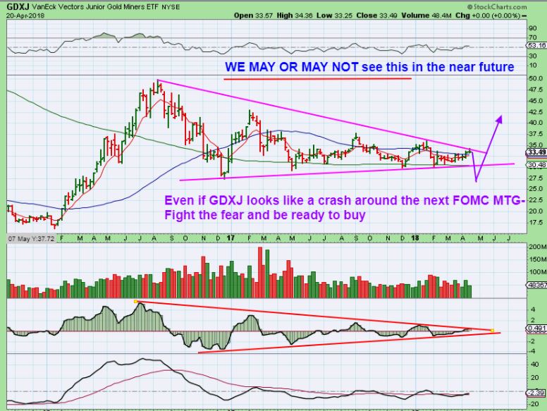 GDXJ  WEEKLY – The Big picture looks quite bullish when it comes to our MIners, but a shake out or stop run is possible. Please read the chart.