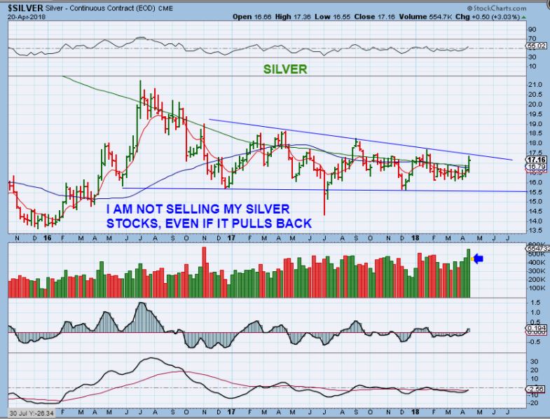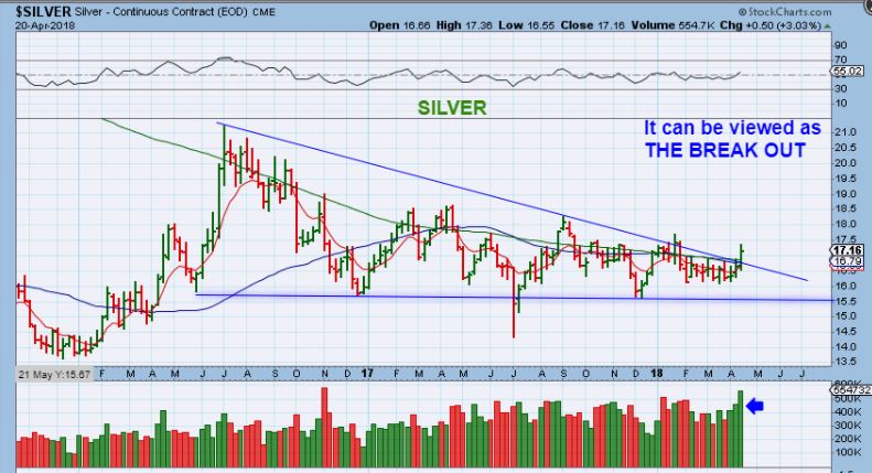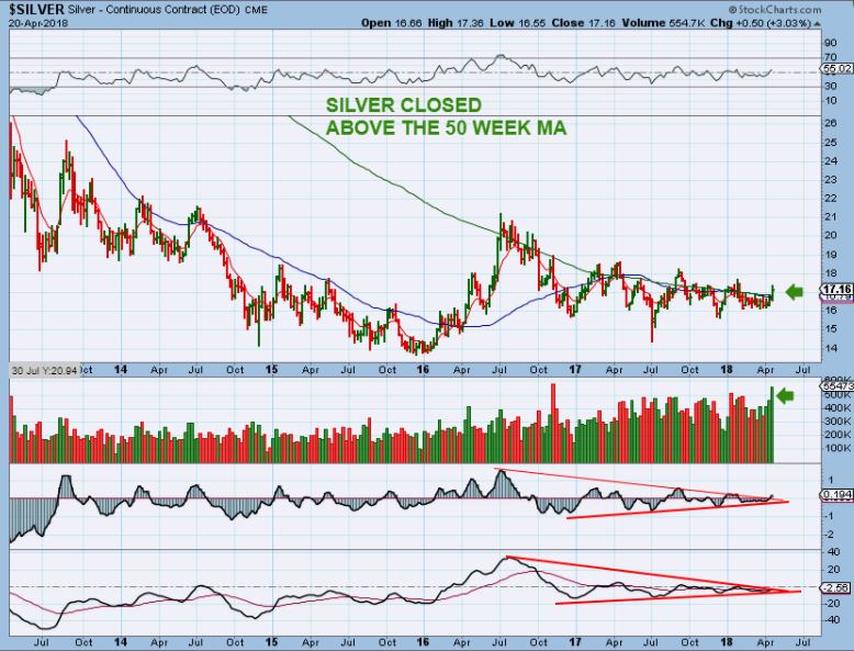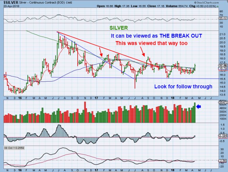 SILVER WEEKLY #2- Volume swelled, and we have been discussing the very bullish COT. It has paid off holding some Silver stocks, but it isn’t too late, this break is fresh.