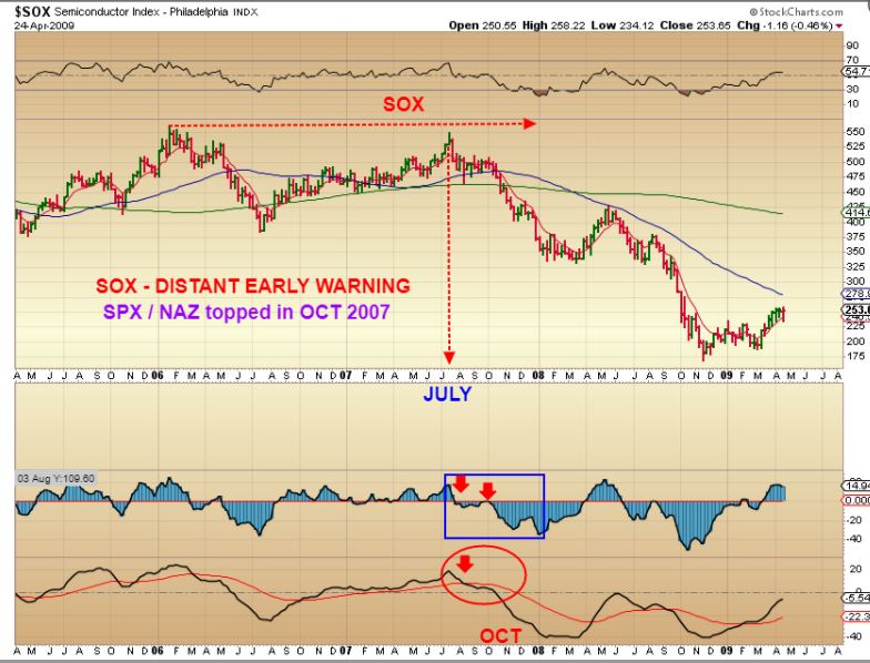 NOTE: In 2007, THE SOX topped Earlier than the SPX – Interesting, the SOX topped well ahead of OCT 2007 when the SPX, DJIA, AND NASDAQ topped. It double topped in JULY 2007.