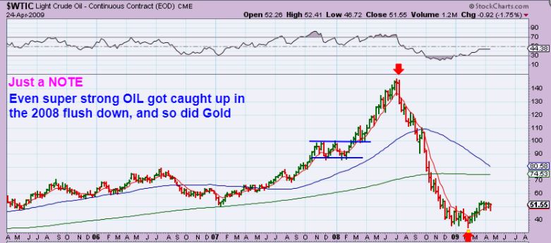 WTIC WEEKLY 2008 – Oil did get caught up in the selling, because we were having a global crisis, but notice that when the SPX & NAS topped in OCT 2007, that is when OIL RALLIED to parabola. The sell off came later.