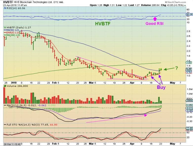 HVBTF- My average on this one is $1.13- I bought the base break above the 10sma, and added a bit higher= avg $1.13.