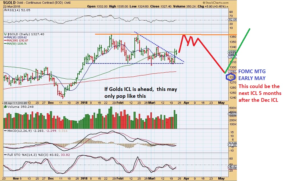 GOLD – I HAVE REPEATEDLY SHOWN THAT ICLS COME 5, 6, or maybe 7 Months apart. IF DEC was the last ICL, we should look at  MAY, JUNE, or even JULY.  I’VE MENTIONED MAYBE THE MAT OR JUNE FOMC MTG AS A TARGET.  JUNE OR JULY  NOW GIVES TIME FOR THE UNEXPECTED, A BREAK OUT, SO LET’s JUST ENTERTAIN THAT IDEA TOO.