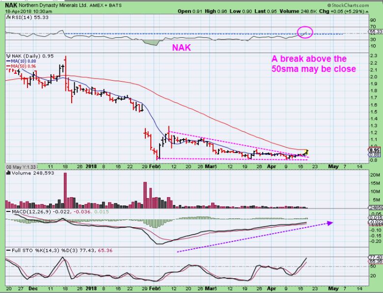 NAK #1–  I posted this at 10:30 a.m. in the comments section. I mentioned that I added, even though it didn’t break out above the 50 yet ( It did break it later). Another reason that I like NAK…