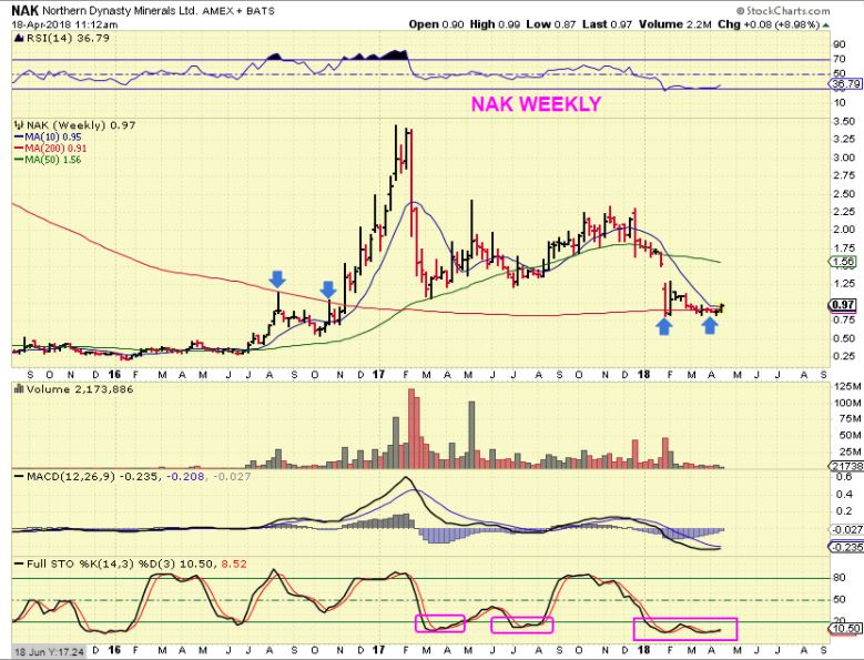 NAK #2 – The WEEKLY shows the weekly 200ma, once acting as resistance,  is supporting price.