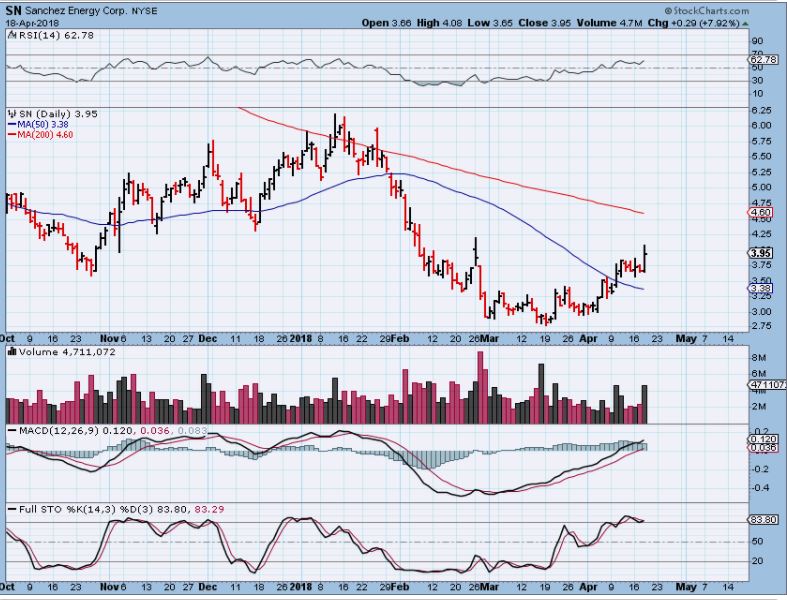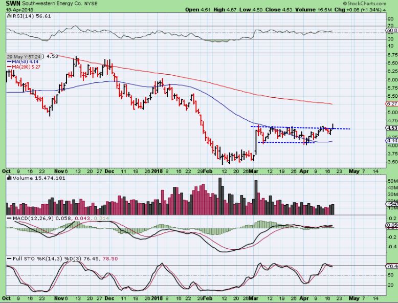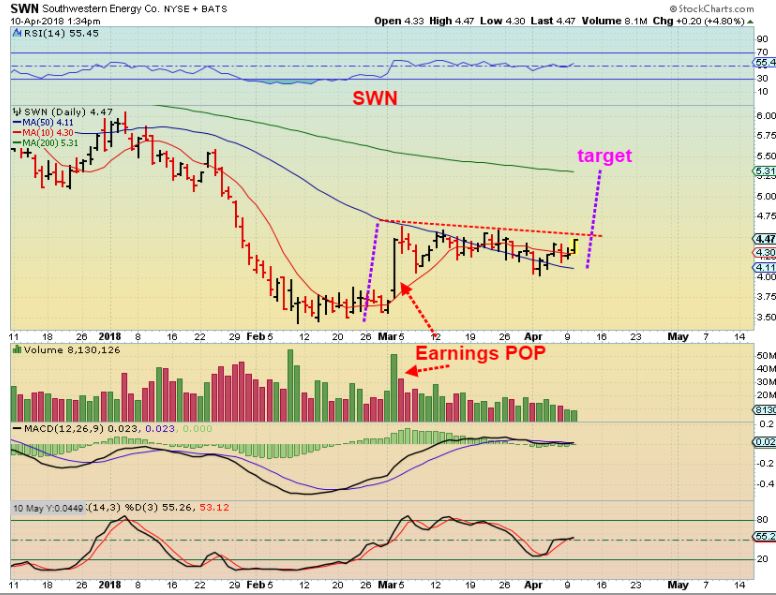 SWN –  April 10 – I liked SWN too and took a good size position near $4.40, and