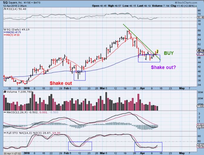 SQ – On April 10th I bought SQ & posted this break of a down trend