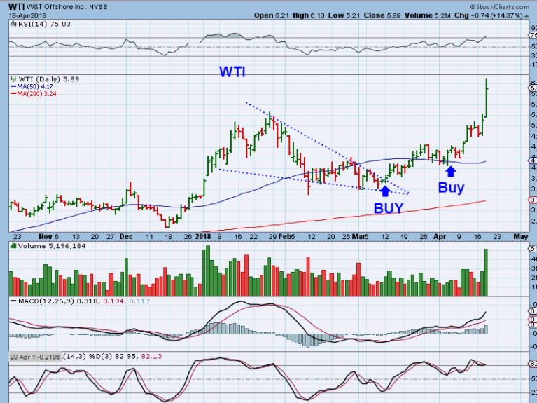 XLE April 10th – This was a big clue, and now the BASE was finished.  The break out happened last week, and Energy stocks became a buy.  I mentioned OAS, SN, WTI, SWN, AREX, AXAS, etc etc  as bullish set ups. I will discuss that laterin the report.