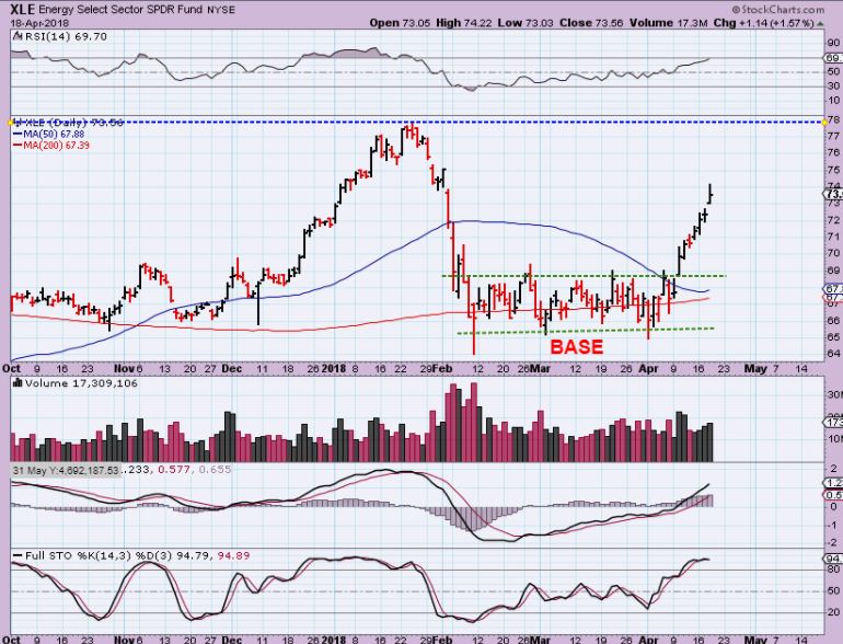XLE – Once they broke from the base, they usually have built up a lot of energy, and they can run to recent highs.