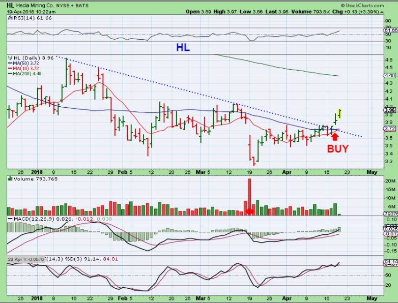 HL was just getting started, breaking above the 10 & 50sma. & down trend