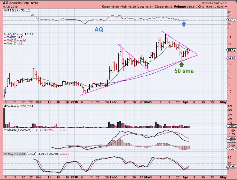 AQ – I’ve owned this one and mentioned it each day as one that did not break down over the last week of selling. I added yesterday due to that fact, a break above the downtrend line is a safer ‘buy’.